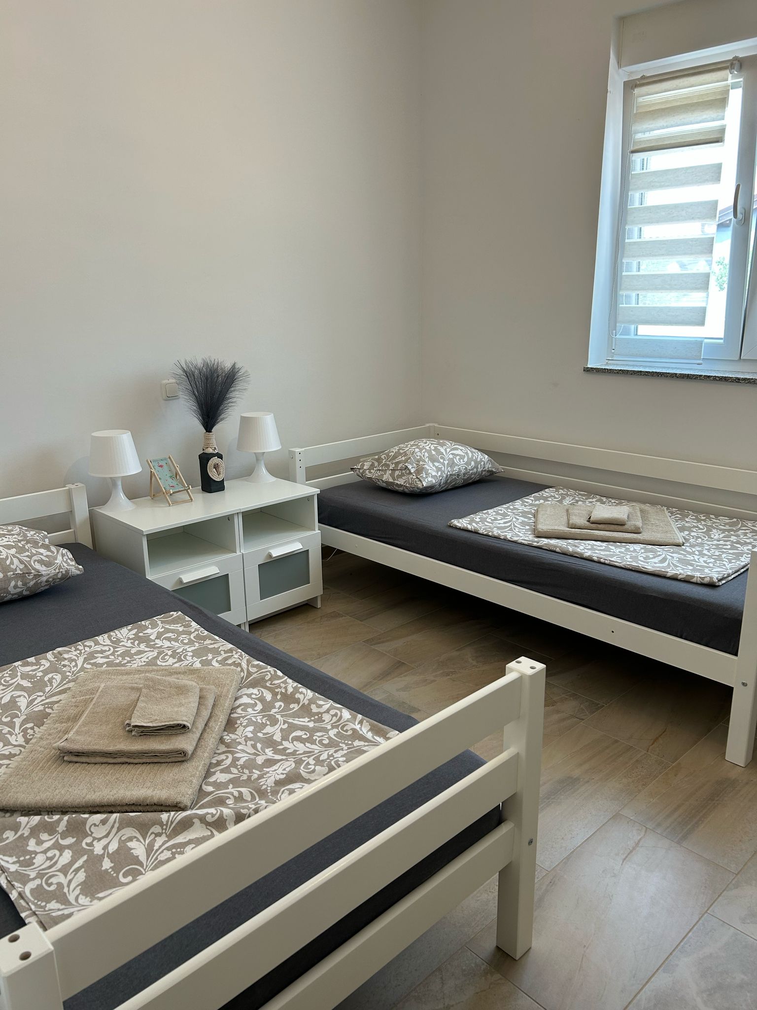 Újépítésű, extra felszereltségű modern apartman Vir sziget központi részén, egy csendes utcában helyezkedik el, ahonnan pár perc sétára minden elérhető (élelmiszerbolt 400m, pékség 200m, fagyizó 600m, éttermek és tengerpart 600m). A városközpont, a bazársor 10 perc séta, ahol esténként szórakoztató programok, koncertek és éttermek, koktélbárok találhatók.