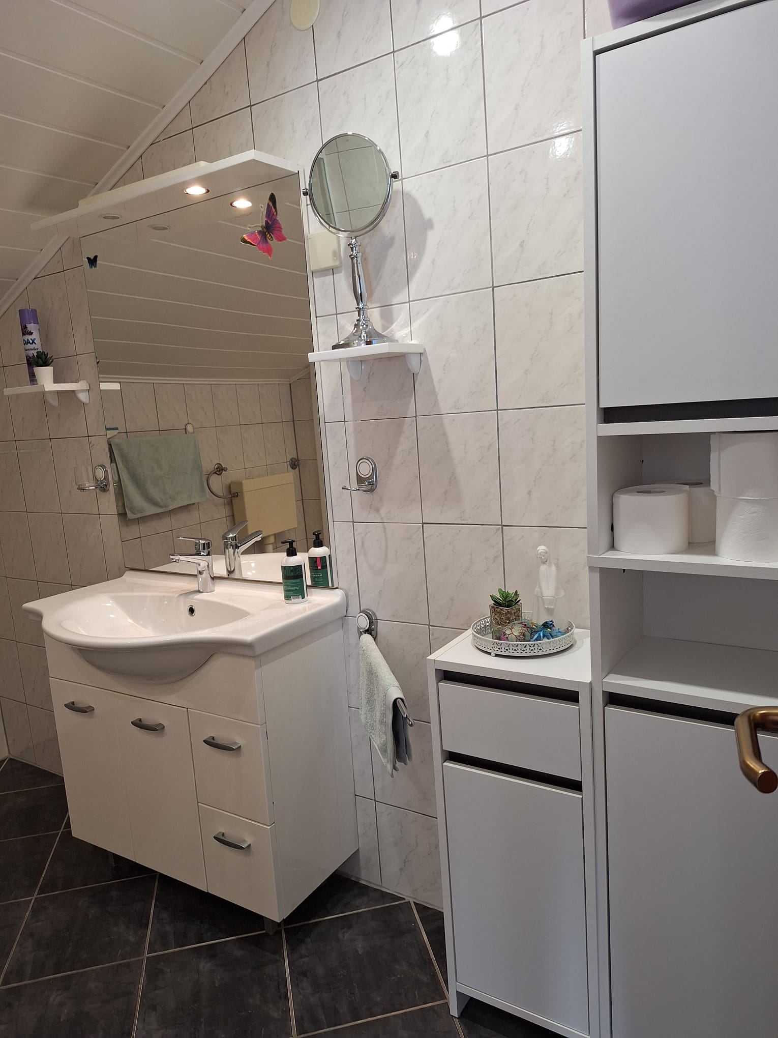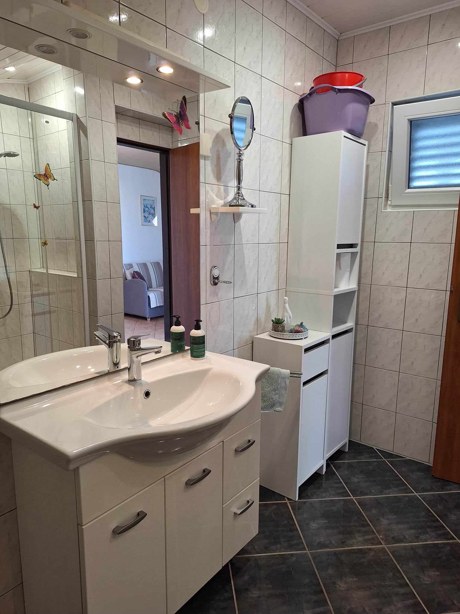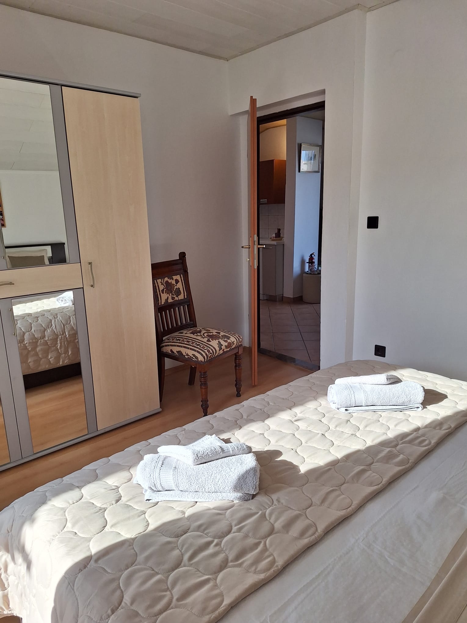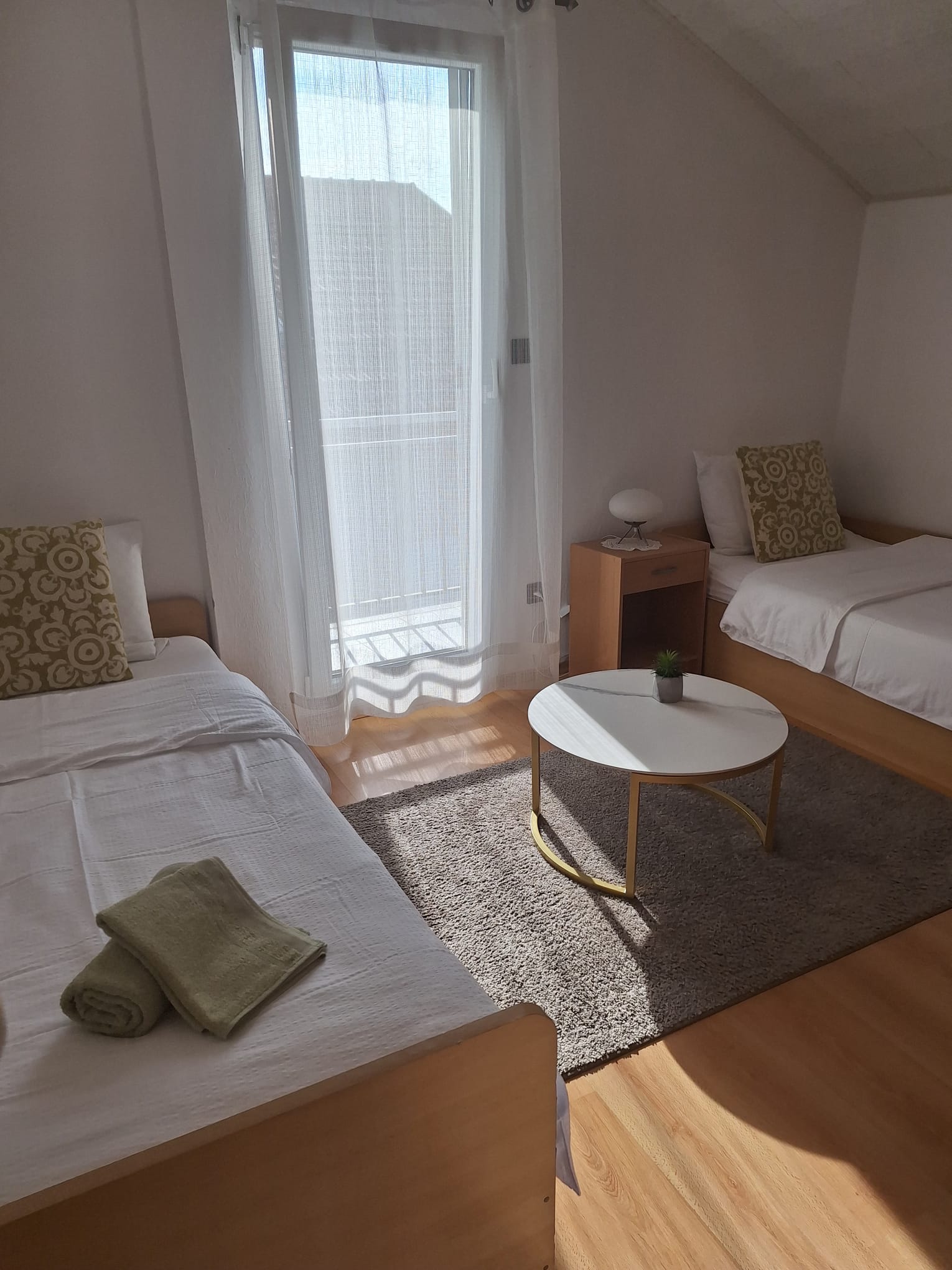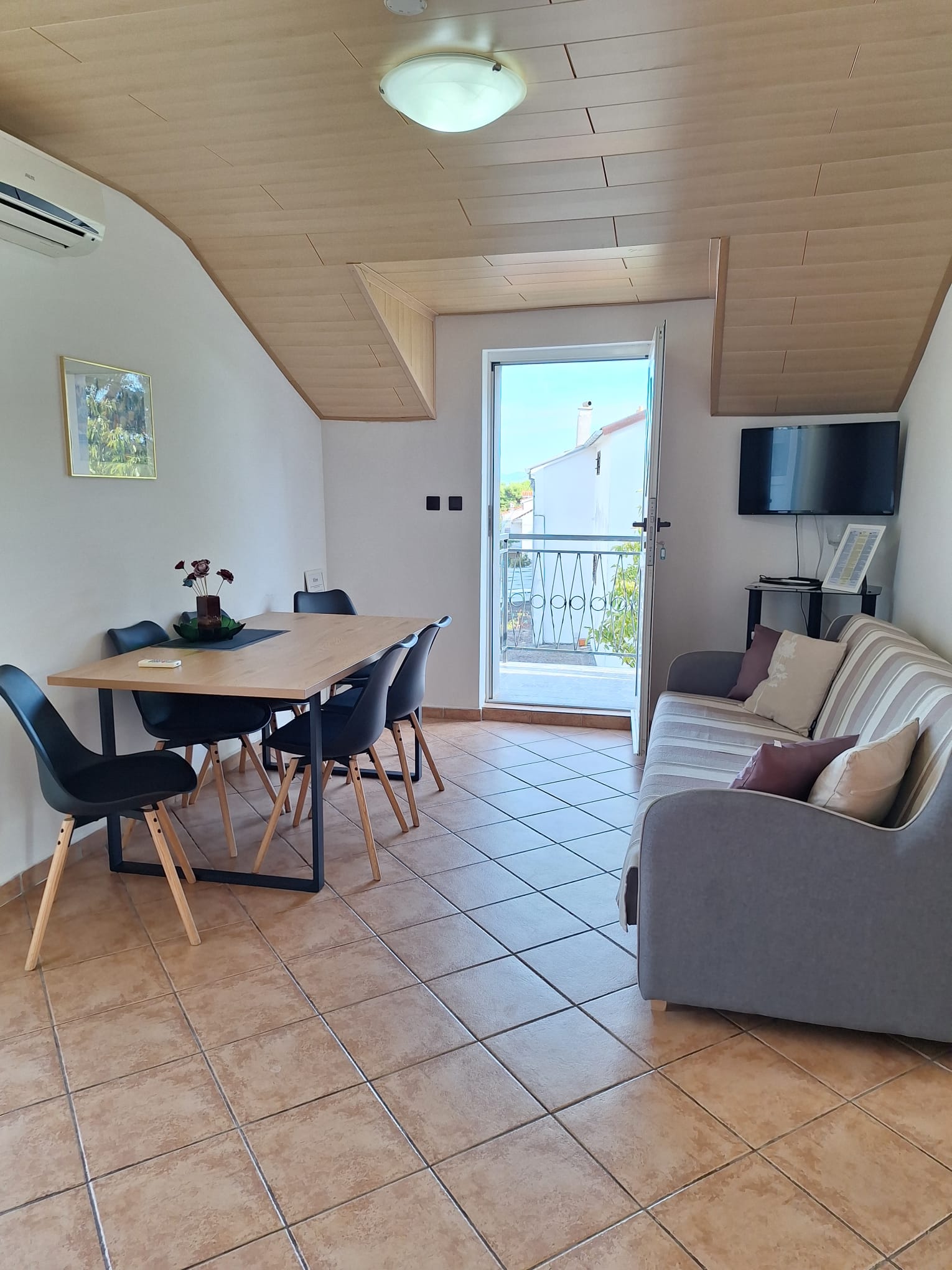 Az épületben két apartman foglalható. Az A1-es apartman a legfelső szinten található. Két hálószobával (franciaágy, 2 db egyszemélyes ágy) és nappalival (kanapé) rendelkezik, 5 fő részére kényelmes. Jól felszerelt konyhával és étkezővel. Terasz kellemes és tágas, esti beszélgetésekre tökéletes. Az udvarban grillezés lehetőség.