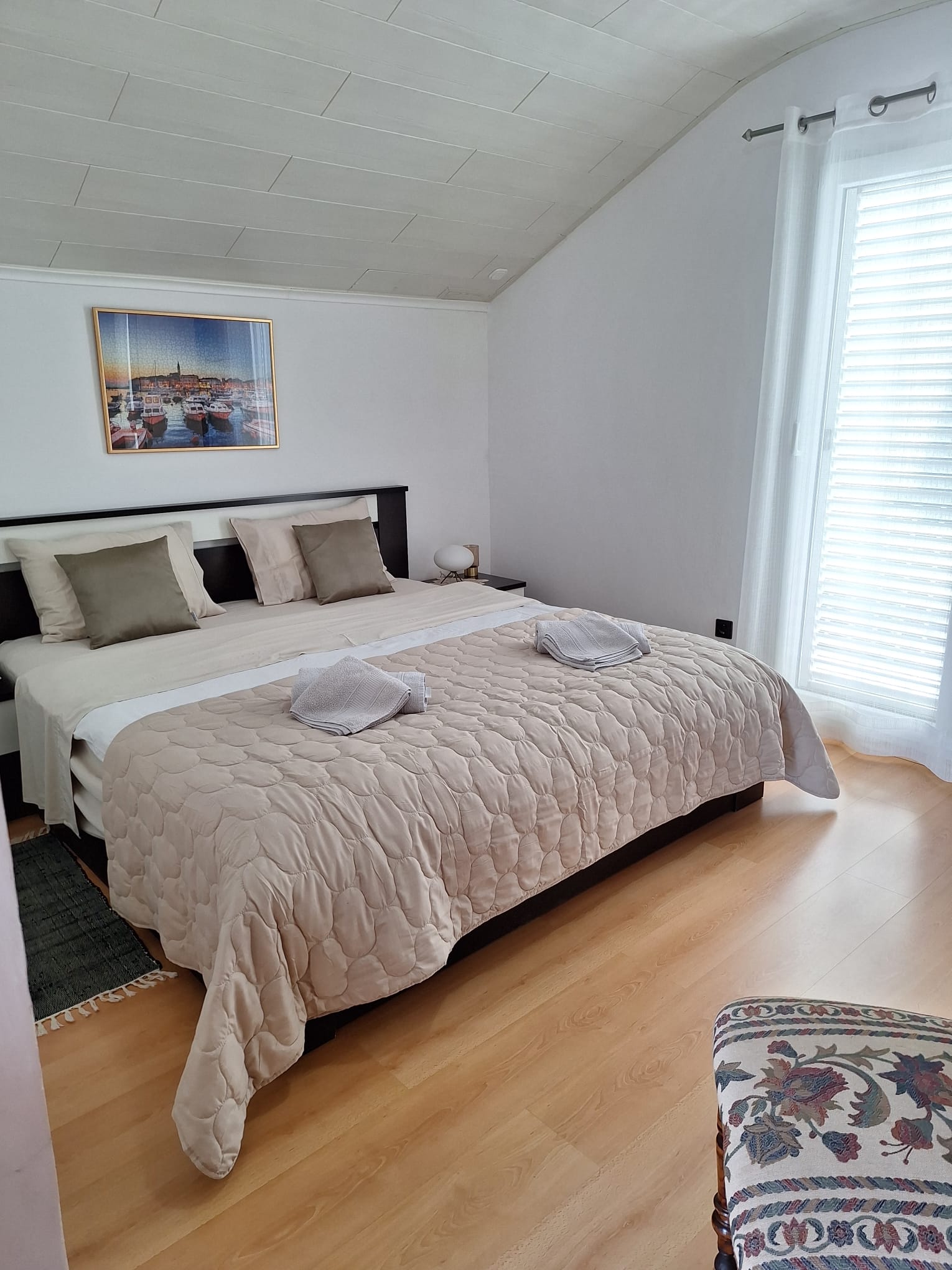 Felszereltség: klíma, wifi, ágynemű, hűtő, főzőlap/sütő, mosogatógép, mikró, kenyérpirító, konyhai edények/étkészlet, zuhanyzó, törölköző, vasaló