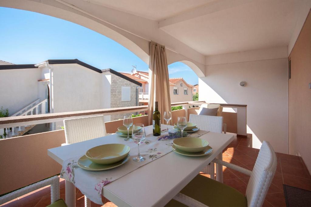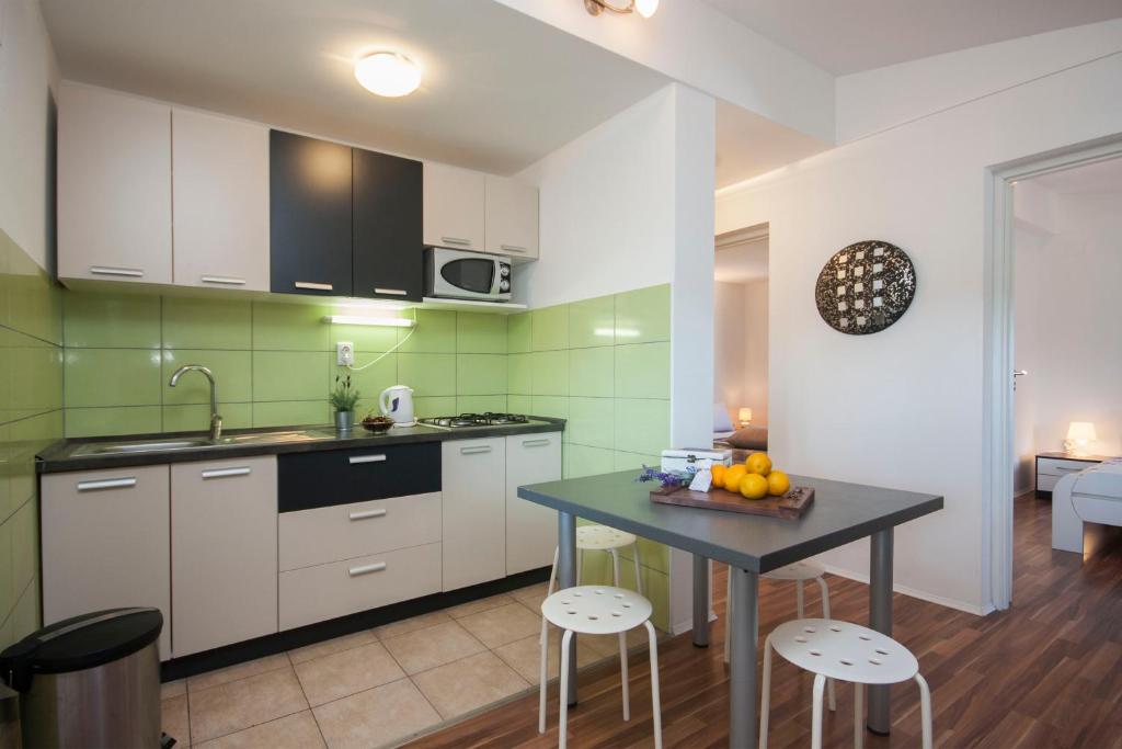 Az apartmanház a sziget déli oldalán, helyezkednek el, 200 méterre a tengertől és a strandtól. Minden apartmanhoz saját parkolóhely, saját terasz tartozik. Az apartmanok újonnan berendezettek. Csendes utcában, ahol egyetlen autó sem halad át, kivéve a bérlőket, így ideális gyermekes családok számára. Az élelmiszerüzlet és pékség 200 méter.
